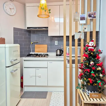 Este apartamento está equipado com comodidades auto-suficientes, incluindo uma cozinha com chaleira elétrica, refrigerador e utensílios de cozinha. O local está localizado bastante perto da paragem mais próximo - Seoul Thermal Plant.
